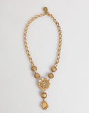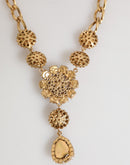 Dolce & Gabbana Gold Brass Crystal Pearl Purple Floral Pendant Jewelry Necklace