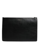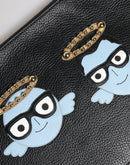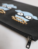 Dolce & Gabbana Black Leather #DGFAMILY Embellished Men Zip Pouch Bag