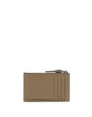 The leather Card Holder with grain and Shiny Zipper Pull by Brunello Cucinelli combines elegance and functionality in a refined design. Featuring a zippered coin purse, it offers 4 slots for cards and business cards, while the leather lining and jeweled decoration add a touch of discreet and distinctive luxury.