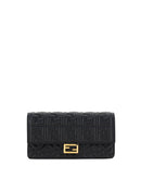 The Matisse Chain Wallet by Fendi is an elegant and practical accessory. Made of leather, it features a gold chain for carrying it by hand, adding a touch of luxury. The front closure is with magnetic flap, while the three-dimensional plaque with the brand’s iconic FF logo is a distinctive detail. The padded design, with the all-over embossed repeated logo, gives a sophisticated and modern look, perfect for those seeking elegance and functionality.
