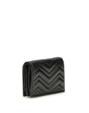 The GG Marmont Wallet by Gucci is an elegant and functional accessory made of matelassé nappa leather with a pinkish beige chevron pattern. The design is embellished with light gold-tone hardware and the famous double G on the front. The interior is organized with five card slots, an open pocket, a zippered pocket and a bill compartment, while the snap-button closure provides security and practicality.