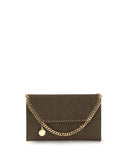 The Falabella chain wallet Bag by Stella McCartney is crafted from vegan snake-effect fabric in warm brown tones and features the signature ruthenium chain with engraved charm. The design includes a snap-button closure and a functional interior with a main compartment and an open pocket, making it ideal both as a compact shoulder bag and as a wallet thanks to the chain strap. Finished with a dustbag, the Falabella by Stella McCartney blends modern style and sustainable values in an elegant and versatile accessory.