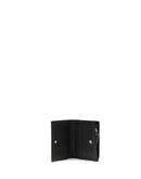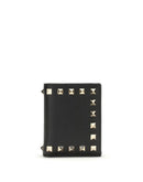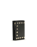 The Rockstud Wallet by Valentino Garavani is crafted from grained calfskin and embellished with the iconic platinum-finish studs. Compact yet functional, it features a snap-button closure, six card slots, a zipped coin pocket, and a bill compartment. A practical accessory with a bold touch.