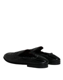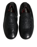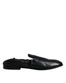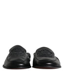 Dolce & Gabbana Black Logo Embroidered Leather Loafer Men Dress Shoes