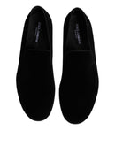 Dolce & Gabbana Black Velvet Slip On Loafers Formal Shoes
