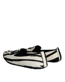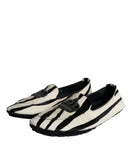 Dolce & Gabbana Black White Calf Fur Slip On Loafers Men Shoes