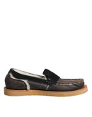 Dolce & Gabbana Brown White Calfskin Leather Loafers Shoes