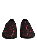 Dolce & Gabbana Red Black Jacquard Slip On Loafers Shoes
