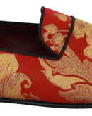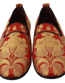 Dolce & Gabbana Red Gold Brocade Slippers Loafers Shoes