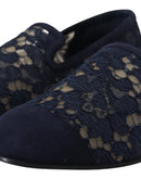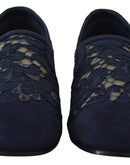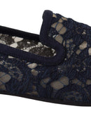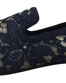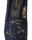 Dolce & Gabbana Blue Floral Lace Slip Ons Loafers Flats Shoes