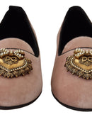 Dolce & Gabbana Pink Velvet Slip Ons Loafers Flats Shoes