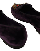 Dolce & Gabbana Purple Velvet DG Heart Loafers Flats Shoes
