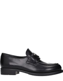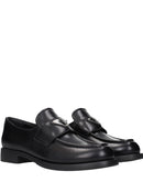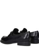 The product with MPN 1D329N055025F0002 and code F84289 leather in black is a loafers designed by Prada. It has features like front logo.