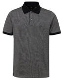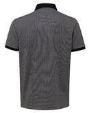 Dunhill Black Cotton and Silk Polo. In jacquard print fabric, front button fastening, black knit collar, small tone-on-tone logo embroidered on the side. Regular fit