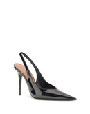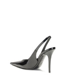 The Anok Pumps by Amina Muaddi are an icon of elegance and sophistication. The slingback style, with its elongated toe, lends a slender and refined look, while the polished leather design adds shine and a touch of luxury. The leather stiletto heel adds height and elegance, perfect for a bold and feminine look. The contrasting logo insole adds a distinctive and classy detail. A pair of shoes ideal for those seeking uncompromising sophistication and style.