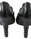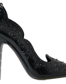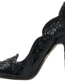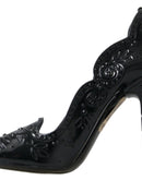 Dolce & Gabbana Black CINDERELLA Floral Crystal Heels Shoes