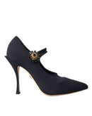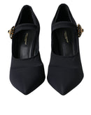 Dolce & Gabbana Black Mary Jane Jersey Crystal Pumps Shoes
