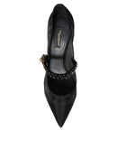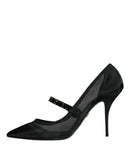 Dolce & Gabbana Black Mesh Mary Jane Crystal Heel Pumps Shoes