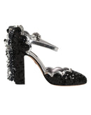 Dolce & Gabbana Black Sequined Ankle Strap Sandals Shoes
