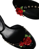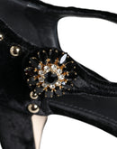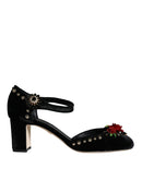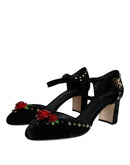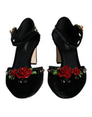 Dolce & Gabbana Black Velvet Roses Ankle Strap Pumps Shoes