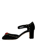 Gorgeous brand new with tags, 100% Authentic Dolce & Gabbana Black velvet studded and rose embellished ankle-strap pumps.