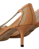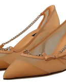 Dolce & Gabbana Peach Mesh Leather Chains Heels Pumps Shoes