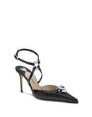 The Double Heart Pumps by Mach&Mach are a tribute to femininity and glamorous elegance. Featuring a slender silhouette with an elongated toe, they feature a double rhinestone heart on the front and an additional heart detail on the ankle strap. The stiletto heel flatters the figure, while the strap closure ensures a secure and refined fit.