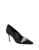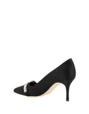 Manolo Blahnik’s Asapump Satin Pumps are an elegant combination of class and sophistication. Made of satin, they feature an almond toe that enhances femininity, while the leather kitten heel adds comfort without sacrificing elegance. The buckle decorated with rhinestones set on the upper catches the light with a touch of understated luxury. Perfect for any formal occasion or special evening, these pumps combine style and practicality in a sophisticated design.