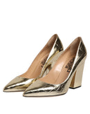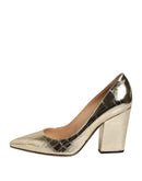 Sergio Rossi Gold Leather Pointed Toe Block Heels Shoes