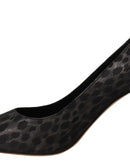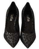 Sofia Black Leopard Leather Stiletto High Heels Pumps Shoes