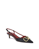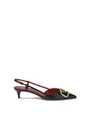Valentino Garavani’s Décolleté Pumps represent an elegant and sophisticated interpretation of the classic slingback model. Featuring a back closure with an adjustable buckle, they have an elongated toe and a delicate kitten heel, ideal for refined comfort. The golden plaque with the brand’s iconic logo applied on the front emphasizes their luxury and sophistication, making every step a gesture of exclusive style.