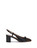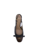 Valentino Garavani’s Valet Du Roi Pumps reinterpret classic style with an old-world elegance. Made of two-tone kid leather, they feature a slingback silhouette embellished with the Signature VLogo detail in brass with an antiqued effect. A refined leather tassel bow and adjustable buckle strap complete the design for a customized fit and sophisticated look.