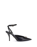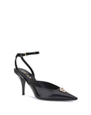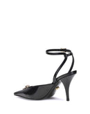 Versace’s Medusa Décolleté is an elegant and bold slingback made of patent calfskin with a tapered toe. The sleek stiletto heel enhances femininity, while the iconic La Medusa accessory on the upper adds a distinctive and recognizable touch, symbolizing the brand’s unmistakable signature.