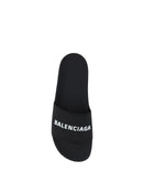 Balenciaga’s Rubber Pool Sandals are a slip-on style with a minimal and contemporary style. Featuring a flat sole for maximum comfort, they feature the brand’s iconic contrasting signature on the front strap, which adds a distinctive and trendy touch to an essential and versatile design.