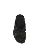 The leather Sandals by Fendi combine elegance and practicality in a slip-on design. The crisscrossed front strap on the back, decorated with the iconic all-over FF logo, lends character to the style, while the flat sole and logo-embossed insole ensure comfort and brand recognition.