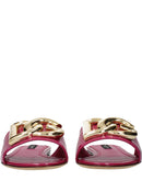 The product with MPN CQ0454A14718H420 and code F85294 patent leather in fuchsia is a slippers and clogs designed by Dolce&Gabbana. It has features like front logo.