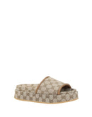Modern design with platform style, Offers comfort without sacrificing style, Flat sole provides stability, Leather trim adds a touch of elegance, Iconic all, over GG Supreme pattern, Recognizable and sophisticated detail, Perfect for those looking for a versatile and trendy accessory, Designed for women