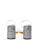 Miu Miu Mixed Silk Sandal with Crystals Heel. White, square toe, open front, silk micro strap on front, silk edged, glitter covered block heel. Composition: 100% Leather-Sku inside:24GIU42