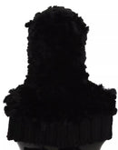 Dolce & Gabbana Black Silver Fox Fur Cashmere Hooded Scarf