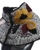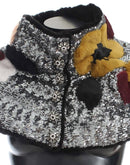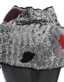 Dolce & Gabbana Silver Sequined Floral Weasel Fur Shoulder Scarf Wrap