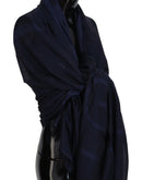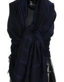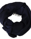 GF Ferre Dark Blue Wool Neck Wrap Shawl Fringes Scarf