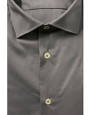 Elevate your wardrobe with the Baldinini Trend Slim Fit Shirt. A perfect blend of Italian craftsmanship and contemporary style, this shirt features a sleek French collar and sophisticated front button closure. Its tailored cut ensures a sharp silhouette, while the subtle gray hue adds versatility to your ensemble. Comfort and elegance meet with a composition that gently contours to your figure, offering a hint of stretch for all-day wear.