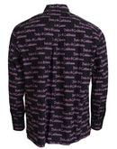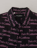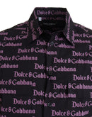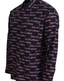 Dolce & Gabbana Black Purple Logo Slim Dress Formal Shirt