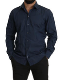Dolce & Gabbana Blue Cotton MARTINI Slim Fit Dress Shirt