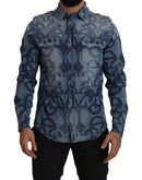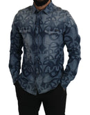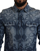 Dolce & Gabbana Blue Denim Stretch DG Logo Casual Mens Slim Shirt