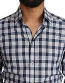 Dolce & Gabbana Blue White Check Cotton Slim Fit GOLD Shirt