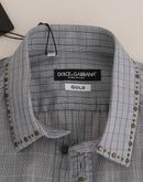 Dolce & Gabbana Gray Check GOLD Cotton Slim Fit Shirt