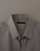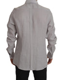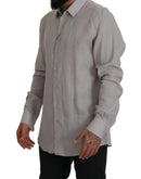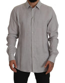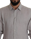 Dolce & Gabbana Gray Linen Long Sleeves Formal GOLD Shirt