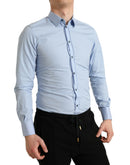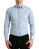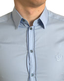 Dolce & Gabbana Sky Blue Cotton Men Formal GOLD Dress Shirt