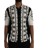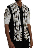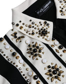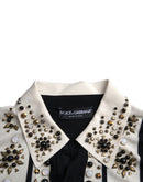 Dolce & Gabbana White Black Silk Studded Stone Crystal Shirt